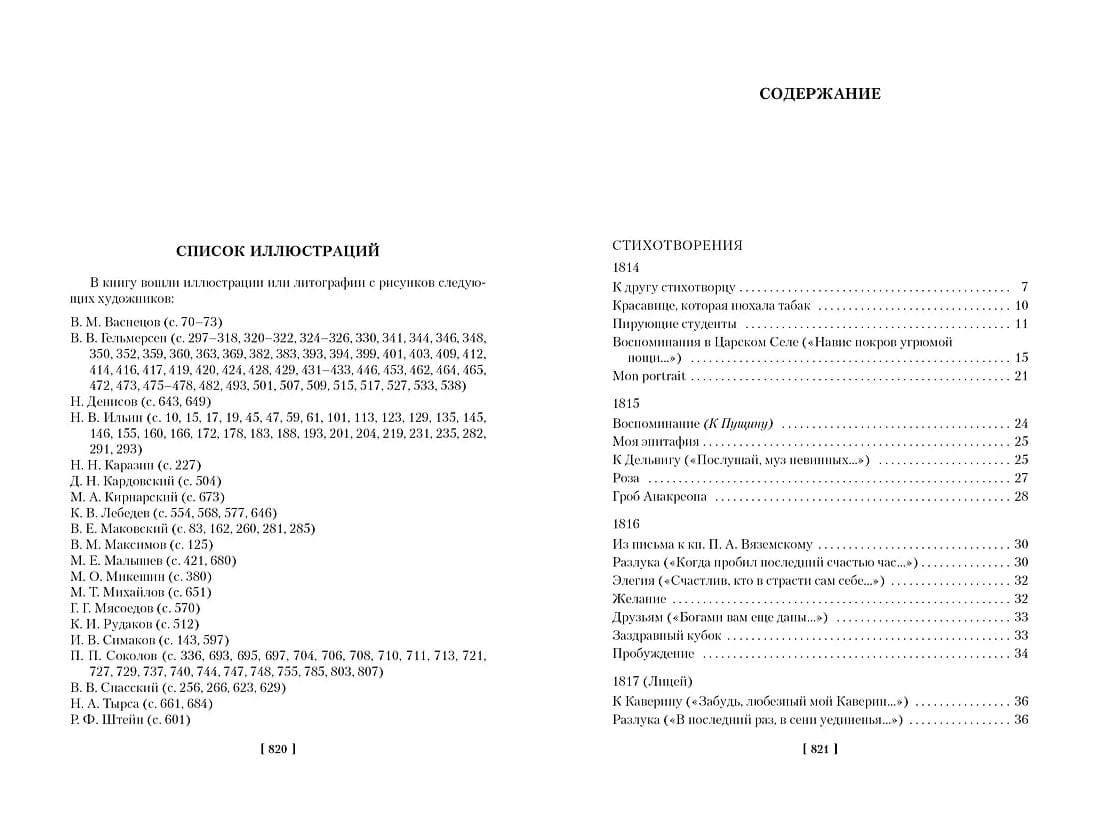 В книгу включены иллюстрации русских художников XIX — начала ХХ века, мастеров книжной графики — В. Е. Маковского, В. М. Васнецова, В. В. Спасского и др., циклы иллюстраций П. П. Соколова к «Капитанской дочке» и В. В. Гельмерсена к «Евгению Онегину».