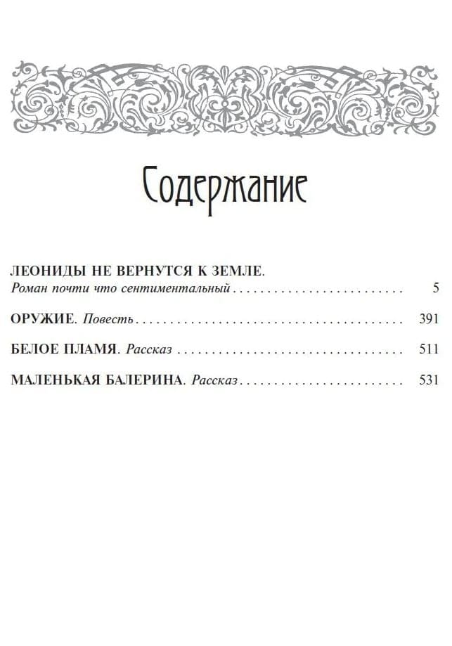 Прозаические произведения Владимира Короткевича средней жанровой формы затрагивают сложные общественно-политические коллизии белорусской истории XVI–XIX веков. Сложные хитросплетения сюжетов, талантливо выписанные характеры, реальные и фантастические события, открытый авторский голос заставляют читателя задуматься над непрерывностью человеческого существования на земле и своим местом на ней, над пониманием добра и зла, милосердия и коварства, любви и ненависти. В этот том вошли роман «Леониды не вернутся к Земле», поветь «Оружие» и два рассказа.