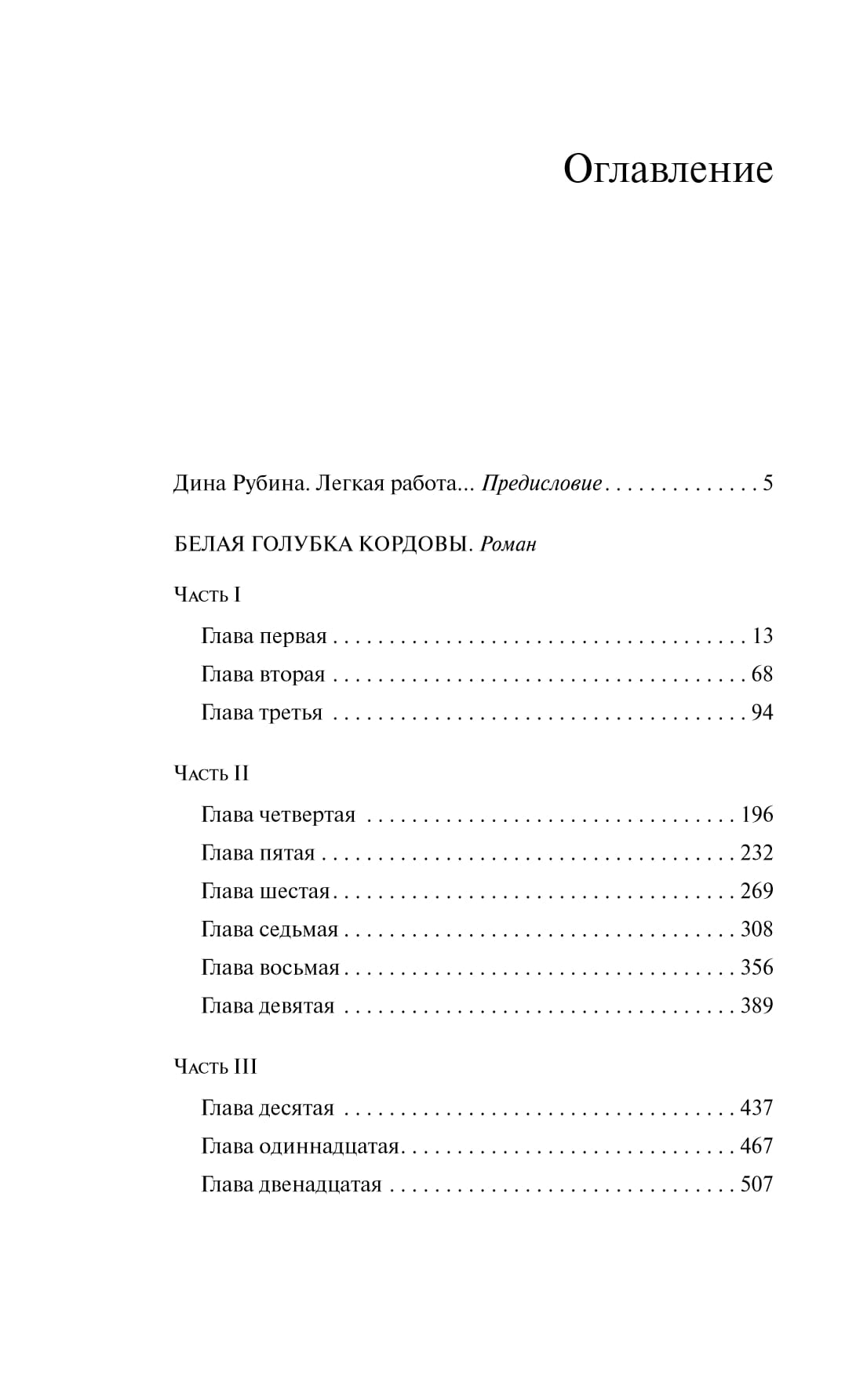 В собрание сочинений включены как ранние произведения автора, так и последние по времени. Полноценная хронология, вдоль которой прослеживается эволюция писательского стиля и расширение географии событий, происходящих во вселенной Дины Рубиной. В одиннадцатый том вошел роман «Белая голубка Кордовы», написанный Рубиной в 2009 году.