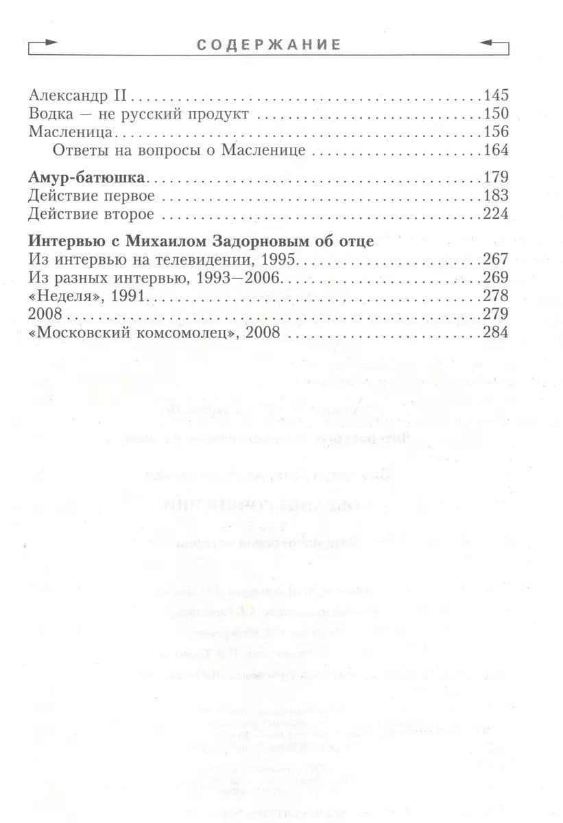 Впервые читателям предоставляется уникальная возможность приобрести собрание сочинений этого удивительного человека. Пятый том раскрывает читателям авторский взгляд на древнерусскую историю, созвучный взглядам историков, не принявших норманскую теорию. Также здесь собраны тексты интервью с Михаилом Николаевичем об истории и его отце, писателе Николае Задорнове. Пьеса «Амур-батюшка» публикуется впервые.