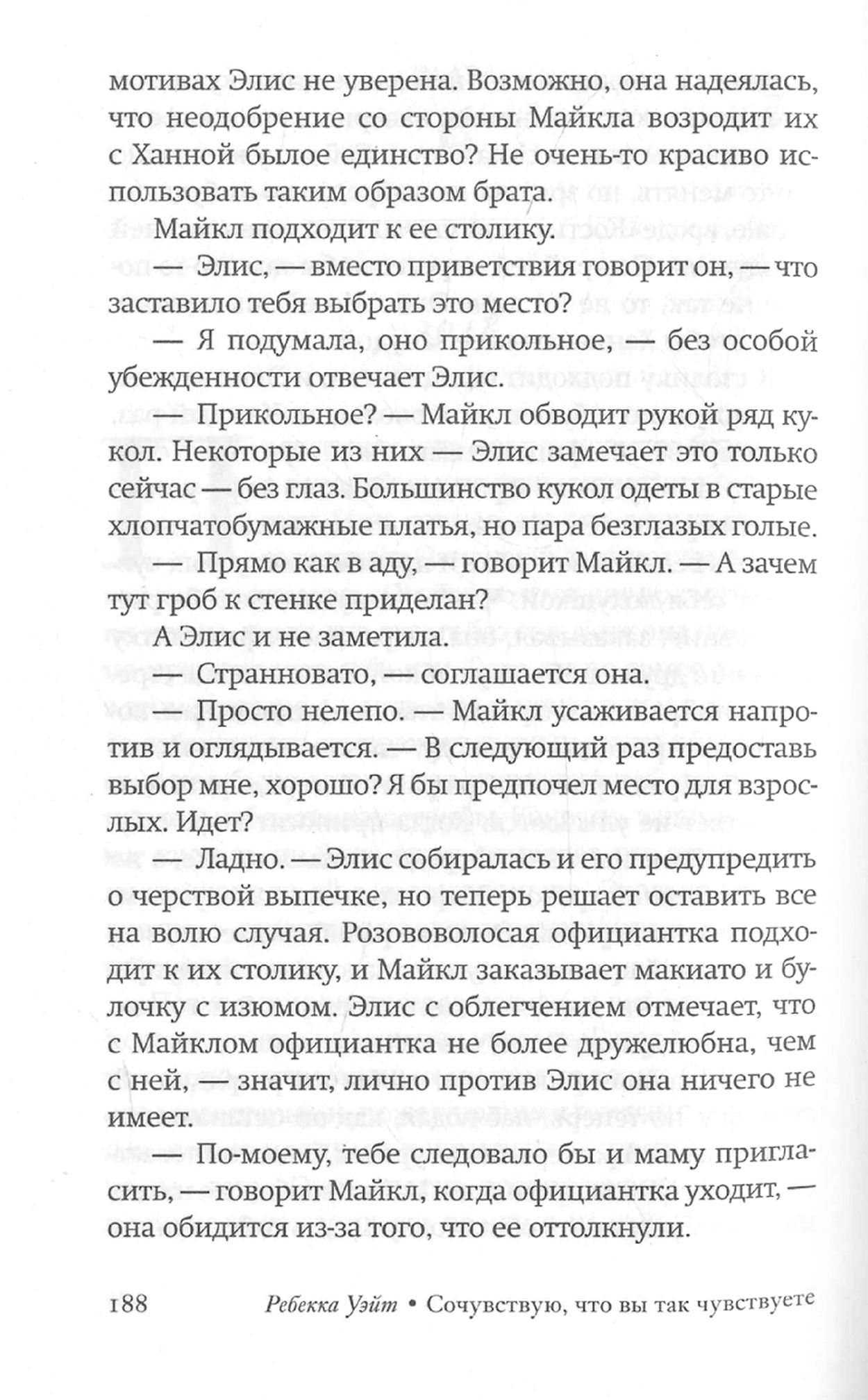 Умный и тонкий роман о семье, о близости, о том, что можно сколько угодно искать себя или бежать от себя, но ничего не добьешься, пока не остановишься и не посмотришь в глаза тем, кто всегда был рядом. «Сочувствую, что вы так чувствуете» – трагедия, которая смешнее любой комедии.