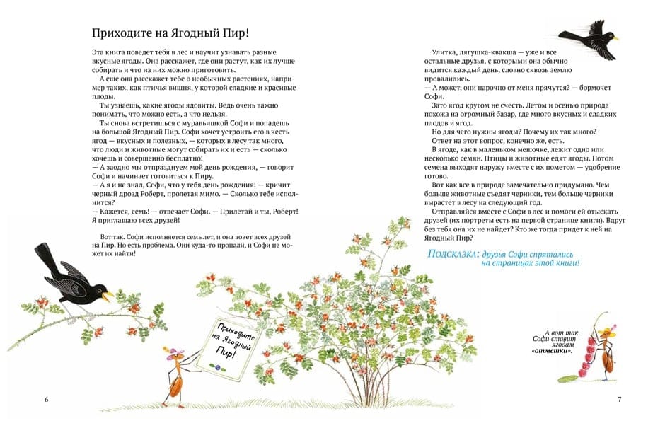 Умеешь ли ты отличать дикую малину от костяники? Знаешь ли, что ягоды можно собирать круглый год, даже зимой? А из какой ягоды получается самое вкусное желе? В этой книге мы расскажем о том, что за ягоды встречаются в наших лесах, научим тебя различать даже такие малоизвестные ягоды, как куманика, княженика и водяника. Ты узнаешь, какие ягоды ядовиты, а какие съедобны, как их лучше собирать и что из них можно приготовить. И главное: ты снова встретишься с муравьишкой Софи и попадешь на большой Ягодный Пир!