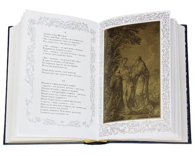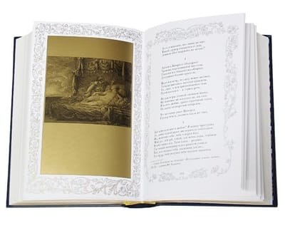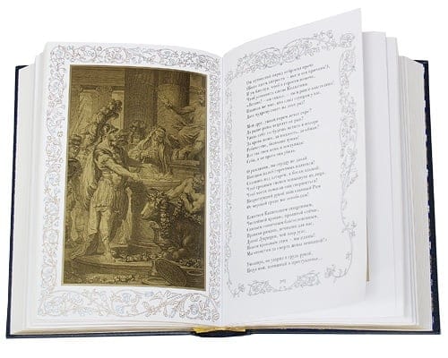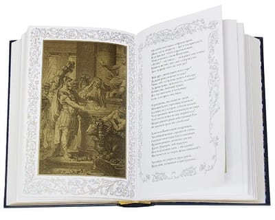 Стильно оформленное подарочное издание в кожаном переплете, с блинтовым тиснением на обложке и с трехсторонним золотым обрезом. Издание проиллюстрировано прекраснейшими гравюрами известных европейских художников XIX века. Большое внимание уделено подбору переводов. Внешнее и внутреннее оформление книг не имеет себе равных из всех собраний великого мастера, когда-либо издававшихся не только в России, но и за рубежом. Эта книга сможет стать жемчужиной любой, даже самой изысканной, библиотеки в мире.