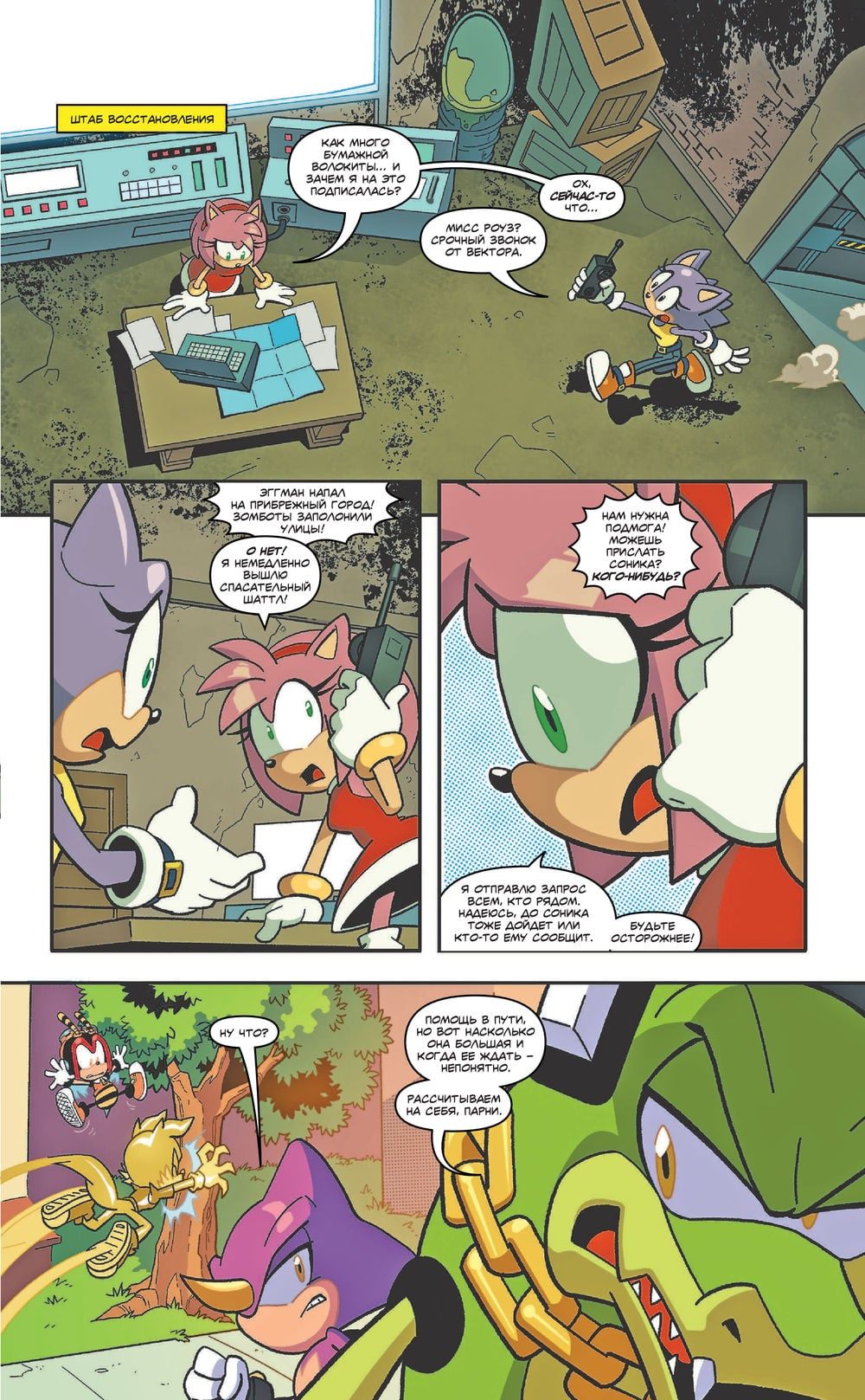 сверхзвуковому ежу спасти город, своих друзей и самого себя? Читайте новый выпуск приключений Соника в настоящем фанатском переводе с оригинальным русским леттерингом!