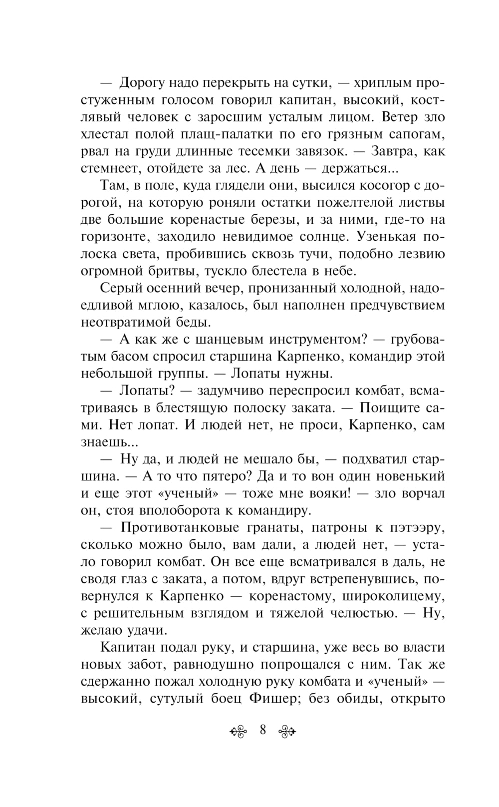 В книгу вошло две его повести. Герои «Сотникова» — двое участников партизанского отряда, отправившись на поиски провизии, они попадают в плен к немецким полицаям. Раненного, но несгибаемого Сотникова приговаривают к смерти, а привести казнь в исполнение приказывают его товарищу Рыбаку.