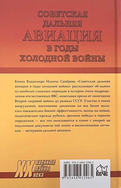 Книга Владимира Ильича Сапёрова «Советская дальняя авиация в годы холодной войны» рассказывает об одном из наиболее сложных периодов в истории этого подразделения отечественных ВВС, охватывая время от окончания Второй мировой войны до развала СССР. Участие в гонке вооружений, постоянное движение ко все более высоким показателям боевой эффективности, выход на новые, недосягаемые прежде рубежи, громкие победы и горькие поражения — все это описывается в книге с опорой на подлинные документы той эпохи и воспоминания летчиков — ветеранов дальней авиации.