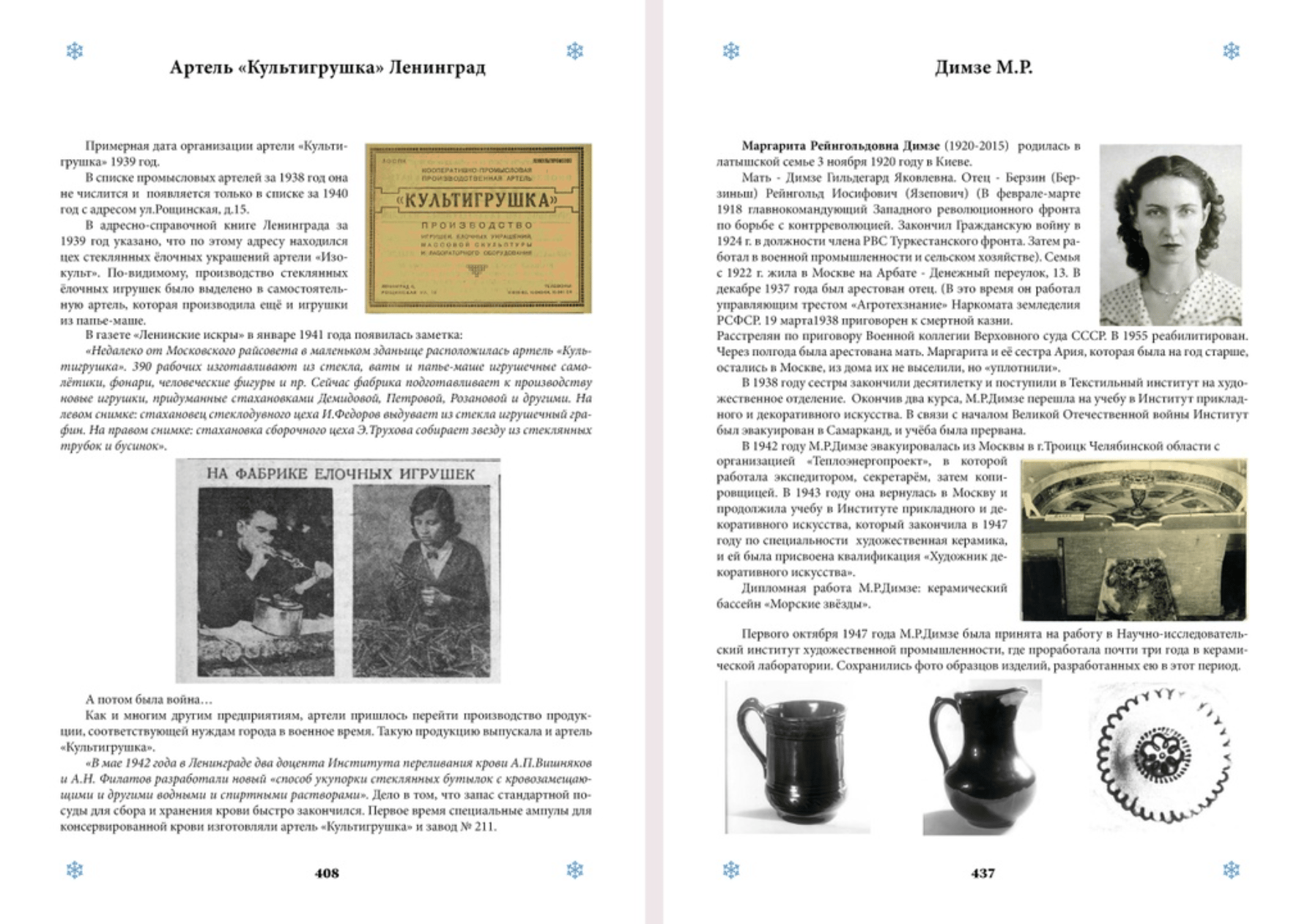 Данное издание представляет собой наиболее полный на сегодняшний день каталог советских стеклянных ёлочных украшений, выпускавшихся промышленностью СССР в 1930-1970 гг. Представлены более 3000 фотографий ёлочных украшений, сгруппированных по тематическим разделам. Кроме того, в каталоге приведены сведения о художниках, создававших ёлочные игрушки и предприятиях-производителях. Справочная информация и иллюстрации помогут в атрибуции ёлочных украшений и определении их стоимости. Книга адресована коллекционерам, искусствоведам, музейным работникам, антикварам, а также всем, кто интересуются историей советских стеклянных елочных украшений.