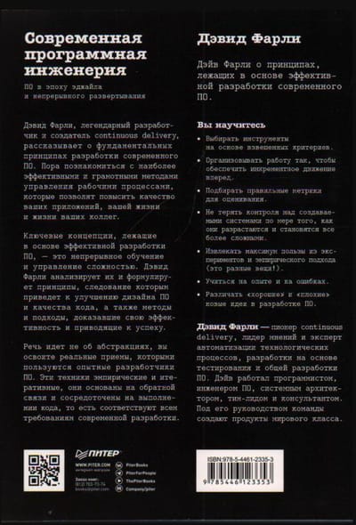 Ключевые концепции, лежащие в основе эффективной разработки ПО, — это непрерывное обучение и управление сложностью. Дэвид Фарли анализирует их и формулирует принципы, следование которым приведет к улучшению дизайна ПО и качества кода, а также методы и подходы, доказавшие свою эффективность и приводящие к успеху.
