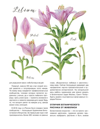 Сегодня ботаническое искусство переживает период расцвета. Появляются новые материалы и направления, расширяющие возможности художников и позволяющие освежить строгую ботаническую иллюстрацию, привнося в изображение сюжет, настроение и эмоции. В этом жанре создаются и нежные акварели с ностальгическим налетом винтажности, и ультрасовременные гиперреалистические изображения, и сиюминутные зарисовки, фиксирующие личные наблюдения художника, и сложные произведения с виртуозной прорисовкой тончайших деталей. Эта книга, созданная профессионалами Ассоциации Художников Ботанического Искусства в виде пошаговых мастер-классов, познакомит вас с материалами, техниками и видами ботанического искусства, позволяя выбрать то, что подходит именно вам. Мы не стали останавливаться только на традиционных техниках, таких как акварель и карандаши, а также обратились к современным материалам — линерам и полимерной глине, и даже давно забытым приемам, таким как «серебряная игла» и работа на пергаменте. Советы будут полезны как любителям, так и профессиональным художникам, решившим попробовать себя в ботанической стезе. Желаем Вам творческих успехов и вдохновения!