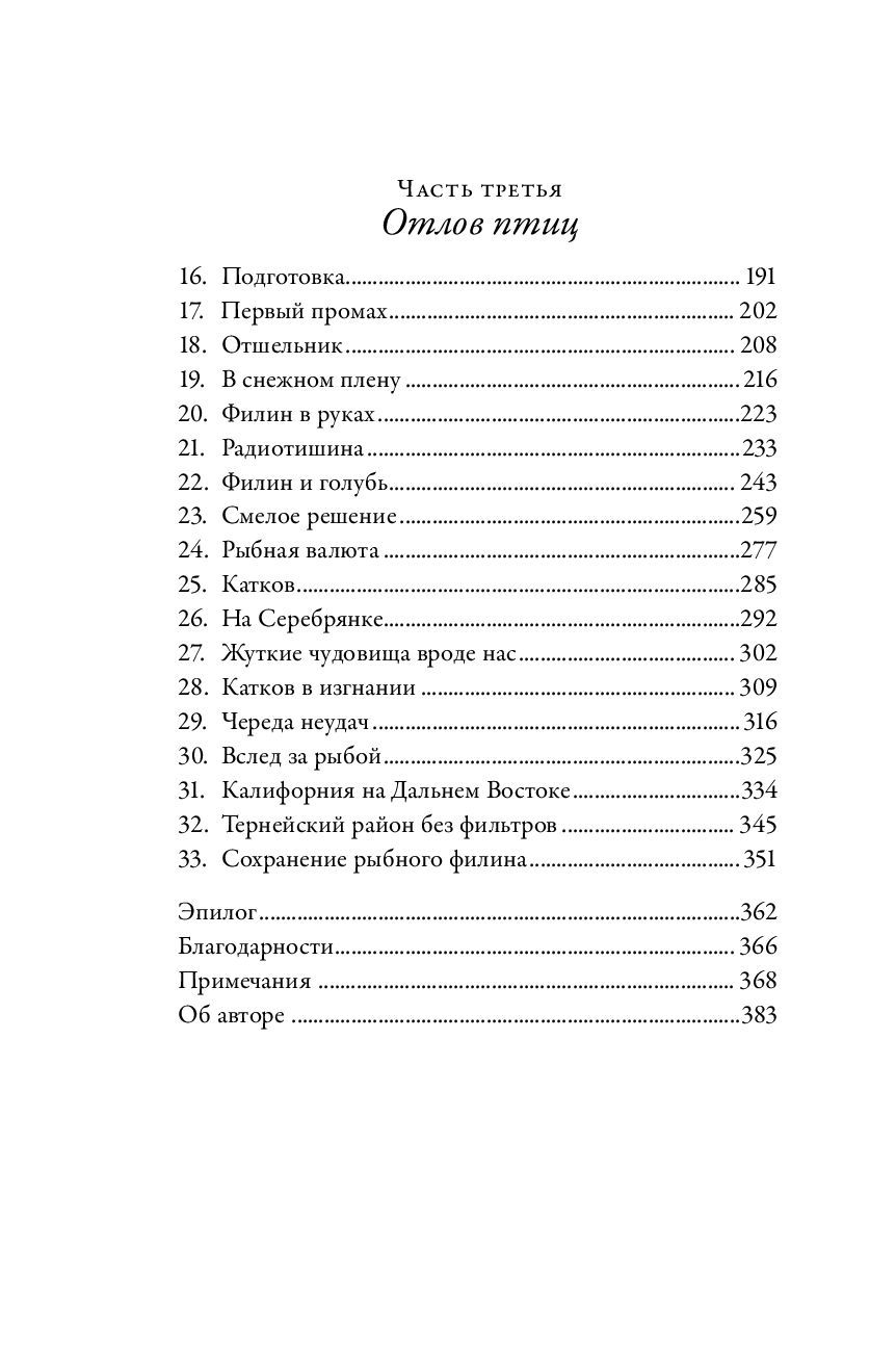 Это книга о рыбном филине, одной из самых больших сов в мире. И это книга американца о России. Пернатый гигант селится в девственных лесах поблизости от водоемов, богатых рыбой, и как раз такие условия пока еще можно найти в российском Приморье на Дальнем Востоке. Вот почему именно здесь произошла встреча начинающего орнитолога Джонатана Слата с таинственной и редкой птицей — встреча, изменившая жизнь ученого.