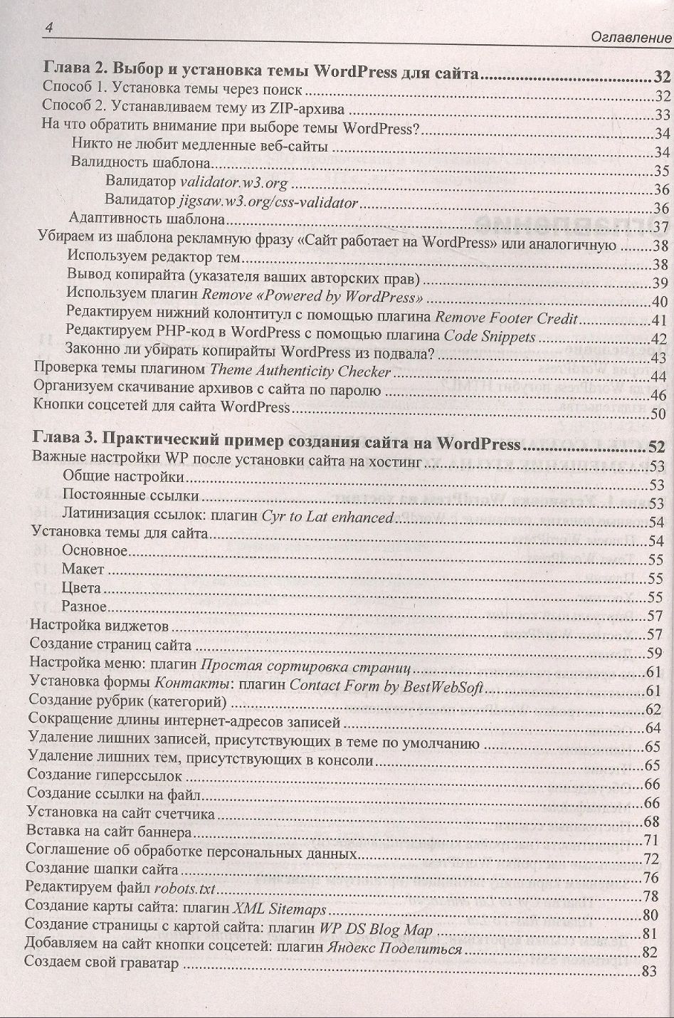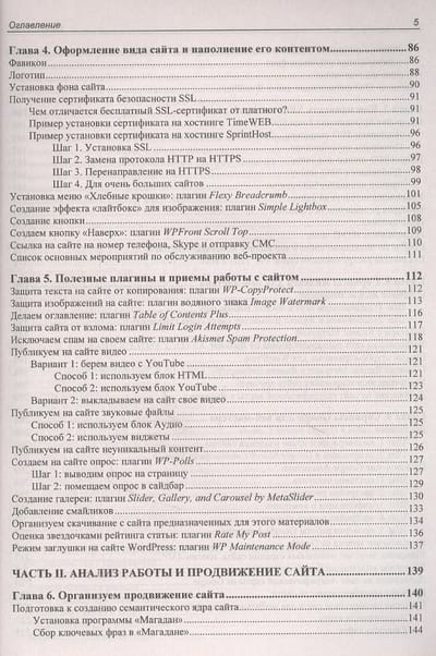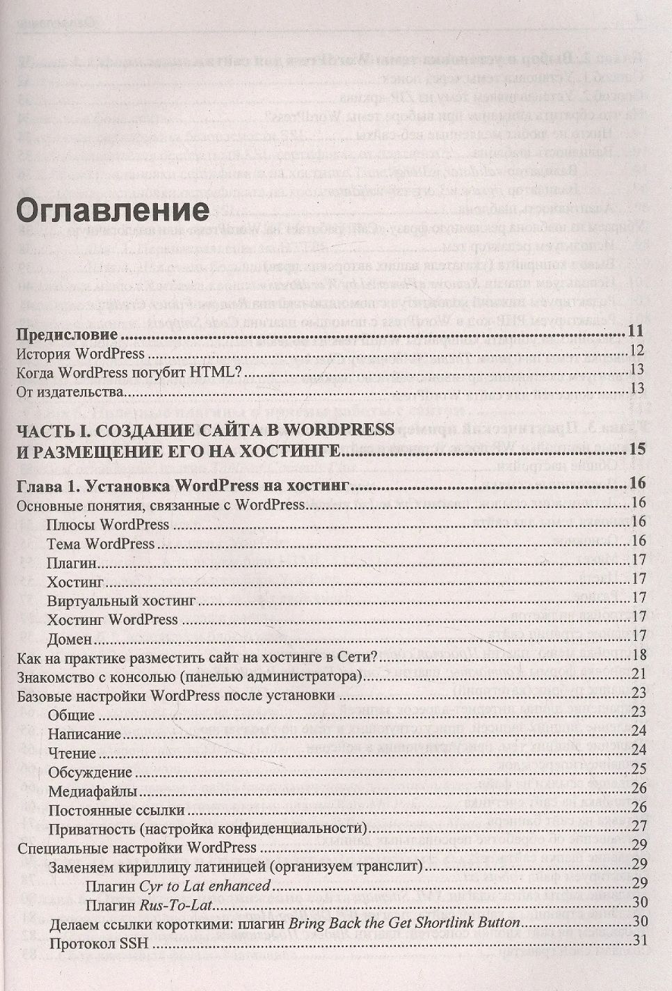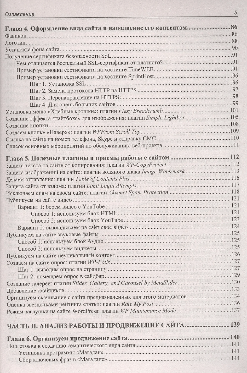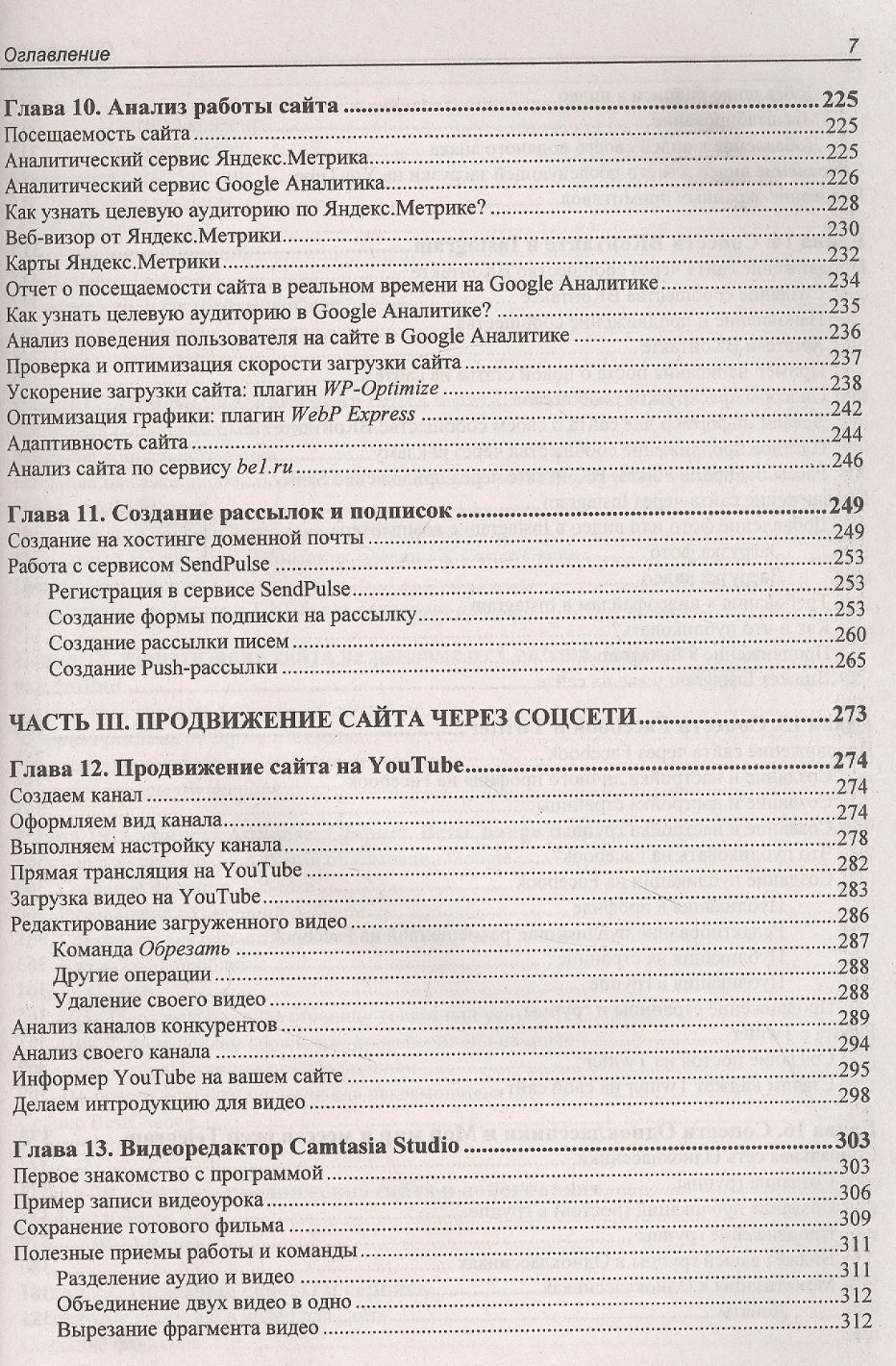 Подробно рассмотрено создание сайта с использованием CMS WordPress: выбор хостинга, подключение домена, установка шаблонов и плагинов. Рассказано о наполнении сайта контентом, о поисковой (SEO) оптимизации, подключении аналитических сервисов Яндекса и Google. Даны советы по бесплатному и коммерческому продвижению сайта в социальных сетях «ВКонтакте», «Одноклассники», Instagram, Facebook, Twitter а также в Telegram. Описано создание подписок и почтовых рассылок для посетителей сайта. Приводятся практические рекомендации по монетизации, рассматриваются инструменты для получения дохода с помощью сайта или личного блога.