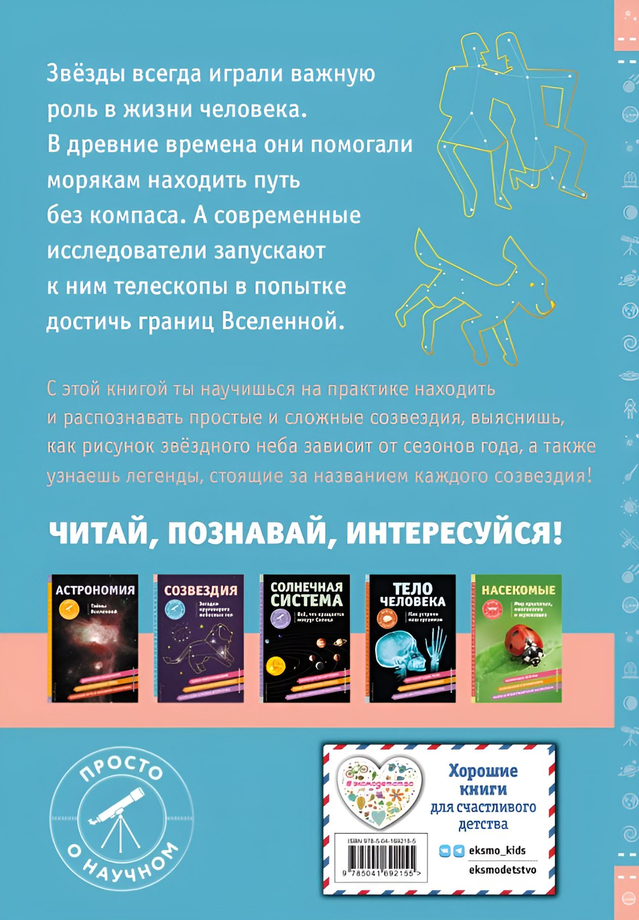 Просто и захватывающе! С этой книгой ребёнок превратится из пассивного наблюдателя в увлечённого знатока созвездий и звёздного неба, разберётся в том, как «читать» рисунки на небе, и узнает массу интересных вещей из области астрономии.