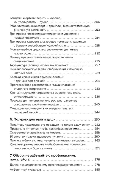 В книге он рассказывает о защемленных нервах, люмбаго, остеопорозе, грыже межпозвоночного диска и многом другом. Маттиас Манке также уделяет внимание образу жизни и упражнениям, необходимым для поддержания здоровья спины и шеи.