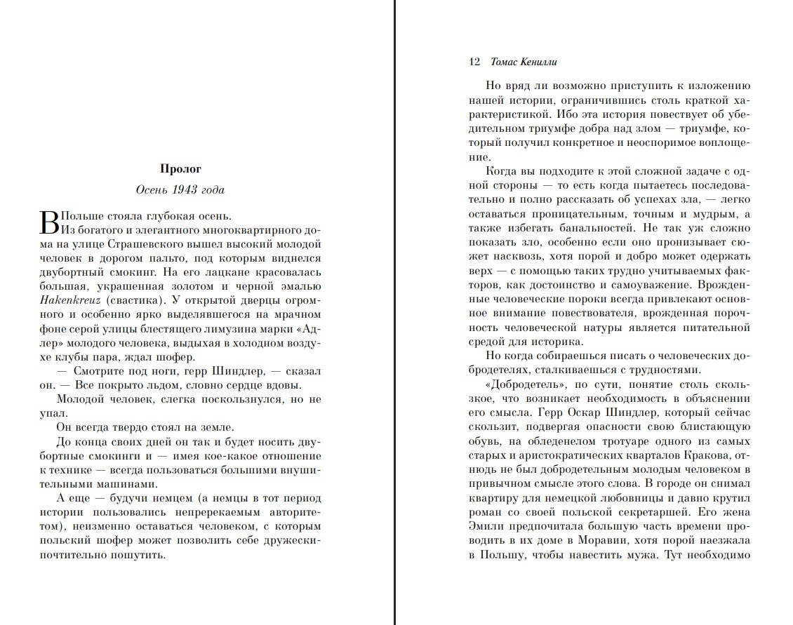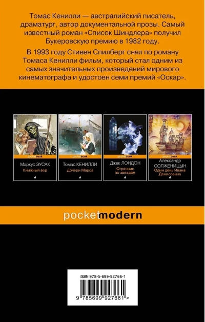 Томас Кенилли — австралийский писатель, драматург, автор документальной прозы. Самый известный роман «Список Шиндлера» получил Букеровскую премию в 1982 году. В 1993 году Стивен Спилберг снял по роману Томаса Кенилли фильм, который стал одним из самых значительных произведений мирового кинематографа и удостоен семи премий «Оскар».
