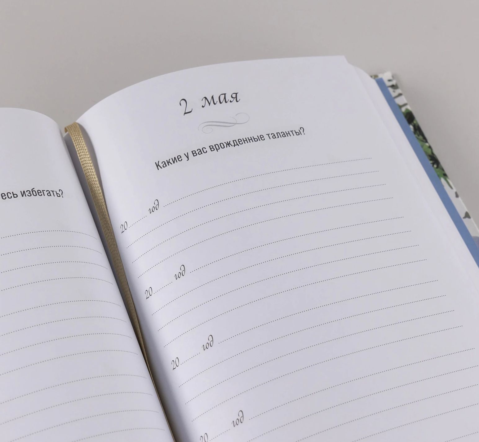 На каждой странице этого ежедневника вы найдете вопрос, отвечая на который каждый год в один и тот же день, вы сможете проанализировать изменения своего состояния и мыслей. Здесь собраны разные вопросы — от прозаических до тех, которые касаются смысла жизни. Ежедневник поможет расслабиться после напряженного дня, отдохнуть, привести мысли в порядок, а также повысить осознанность, научиться фиксировать мысли и эмоции.