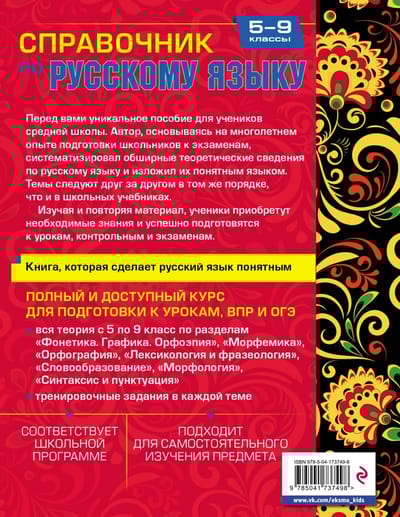 Уже начиная с 5-го класса ученик может самостоятельно заниматься по этому справочнику — весь материал изложен просто и доступно, с учетом возрастных особенностей. Последовательно изучая тему за темой, школьники приобретут необходимые знания, подготовятся к урокам, ОГЭ и ВПР.