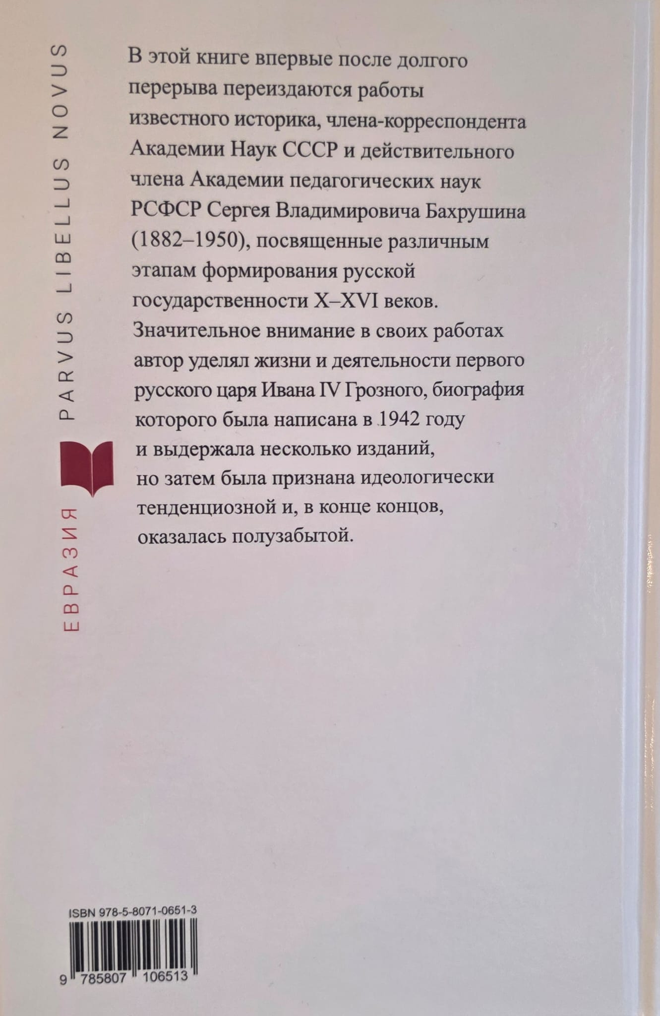 В этой книге впервые после долгого перерыва переиздаются работы известного историка, члена-корреспондента Академии Наук СССР и действительного члена Академии педагогических наук РСФСР Сергея Владимировича Бахрушина (1882–1950), посвященные различным этапам формирования русской государственности X–XVI вв. Значительное внимание в своих работах автор уделял жизни и деятельности первого русского царя Ивана IV Грозного, биография которого была написана в 1942 г. и выдержала несколько изданий, но затем была признана идеологически тенденциозной и, в конце концов, оказалась полузабытой.