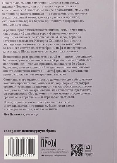 Максим Семеляк казался музыкальным критиком «Афиши», отцом-основателем The Prime Russian Magazine, главным редактором Men’s Health — и отродясь не был евангелистом автофикшена. Тем не менее герой его первого романа — надежный: любую комиссию присылайте — рассказчик: один в один автор образца 2008 года. Нарцисс-мизантроп, он раскапывает могилу на Ваганьковском и, окружив себя свитой из эксцентричных существ, притворяется внуком Зощенко, изучает боевое искусство, практикует мирное варварство, торгует прошлогодним снегом, погружается в бытовую феноменологию, барахтается между юмореской и элегией и плавает в философии.
