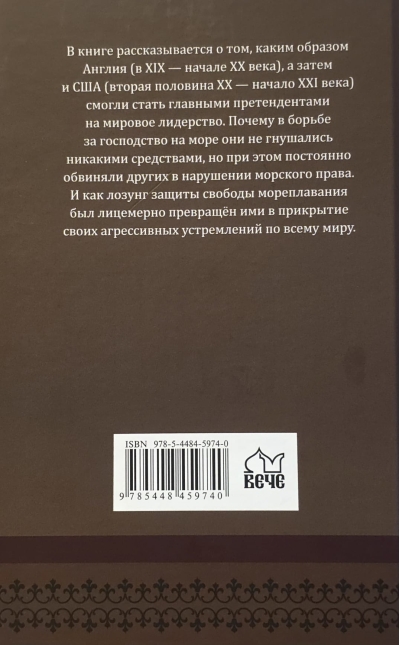 В книге рассказывается о том, каким образом Англия (в XIX — начале XX века), а затем и США (вторая половина XX — начало XXI века) смогли стать главными претендентами на мировое лидерство. Почему в борьбе за господство на море они не гнушались никакими средствами, но при этом постоянно обвиняли других в нарушении морского права. И как лозунг защиты свободы мореплавания был лицемерно превращён ими в прикрытие своих агрессивных устремлений по всему миру.