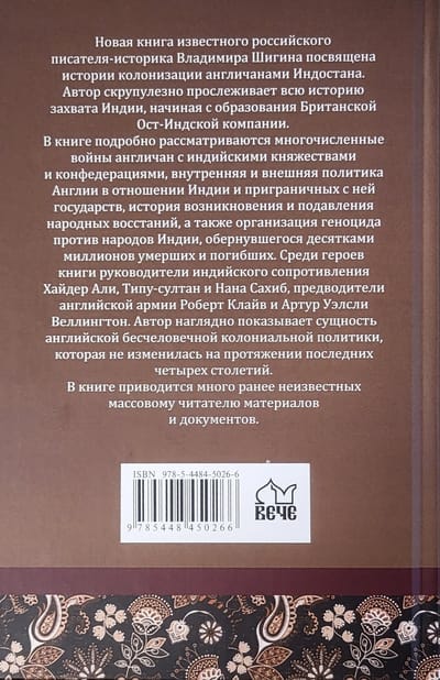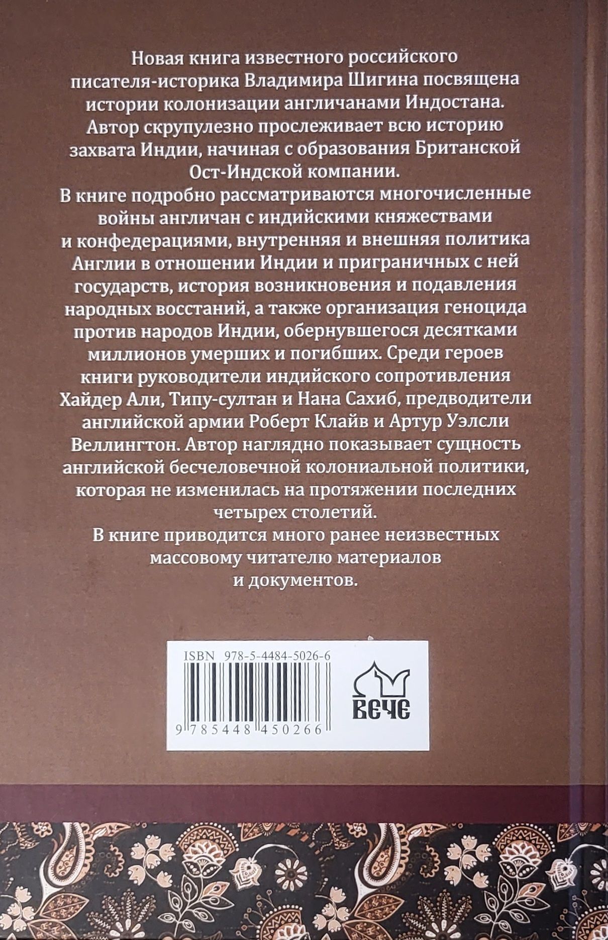 Новая книга известного российского писателя-историка Владимира Шигина посвящена истории колонизации англичанами Индостана. Автор скрупулезно прослеживает всю историю захвата Индии, начиная с образования Британской Ост-Индской компании.