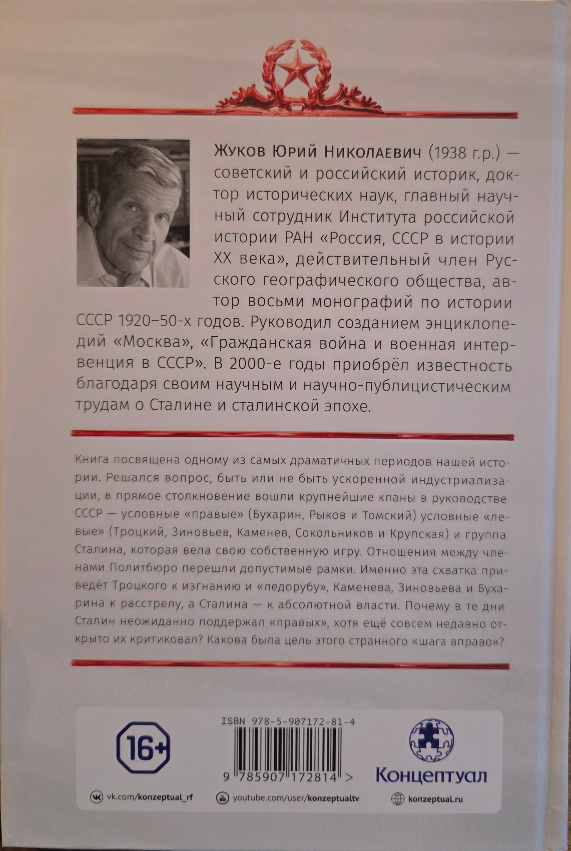 Эта книга посвящена одному из самых драматичных периодов нашей истории, предопределивших судьбу не только СССР, но и современной России. Решался вопрос, быть или не быть ускоренной индустриализации (плодами которой мы пользуемся до сих пор). В прямое столкновение вошли крупнейшие кланы в руководстве СССР — условные «правые» (Бухарин, Рыков и Томский) условные «левые» (Троцкий, Зиновьев, Каменев, Сокольников и Крупская) и группа Сталина, которая вела свою собственную игру. На XIV съезде партии отношения между членами Политбюро перешли допустимые рамки, дискуссия стала формой сведения старых счётов. Именно эта схватка приведёт Троцкого к изгнанию и «ледорубу», Каменева, Зиновьева и Бухарина к расстрелу, а Сталина — к абсолютной власти. Почему в те дни Сталин неожиданно для всех поддержал «правых», хотя ещё совсем недавно открыто их критиковал? Какова была цель этого странного «шага вправо»? К чему это впоследствии привело? В настоящей книге доктор исторических наук Юрий Жуков на основе архивных данных подробно и доходчиво описывает события, произошедшие на вершине советской власти в 1926?1927 годах. Книга является продолжением труда Юрия Жукова «Оборотная сторона НЭПа».