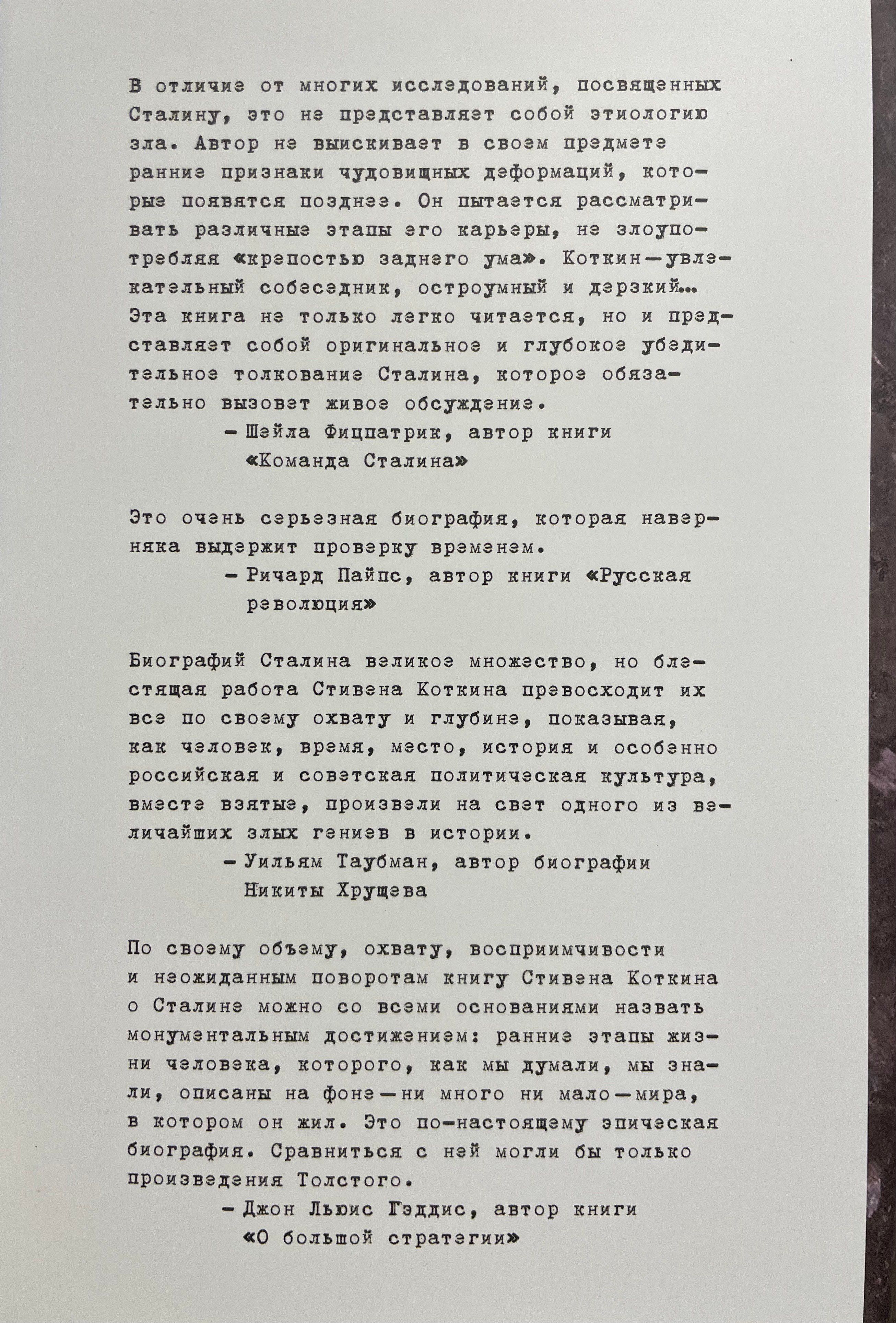 Стивен Коткин, всемирно известный историк, профессор Принстонского университета (США), предпринял успешную попытку написать тотальную историю сталинского режима и его воздействия на Евразию и остальной мир. Второй из трех томов этого труда — «В предчувствии Гитлера». В этом томе изучается роль Сталина в ключевых событиях, происходивших в СССР в период 1929–1941 гг.: «революция сверху» (сворачивание нэпа и насильственная коллективизация), индустриализация, создание современной армии, большой террор, подготовка к войне с Германией. Автор показывает процесс создания диктаторского режима Сталина, объясняет его психологию и причины принятия важнейших решений. Книга заканчивается событиями субботнего вечера 21 июня 1941 г.