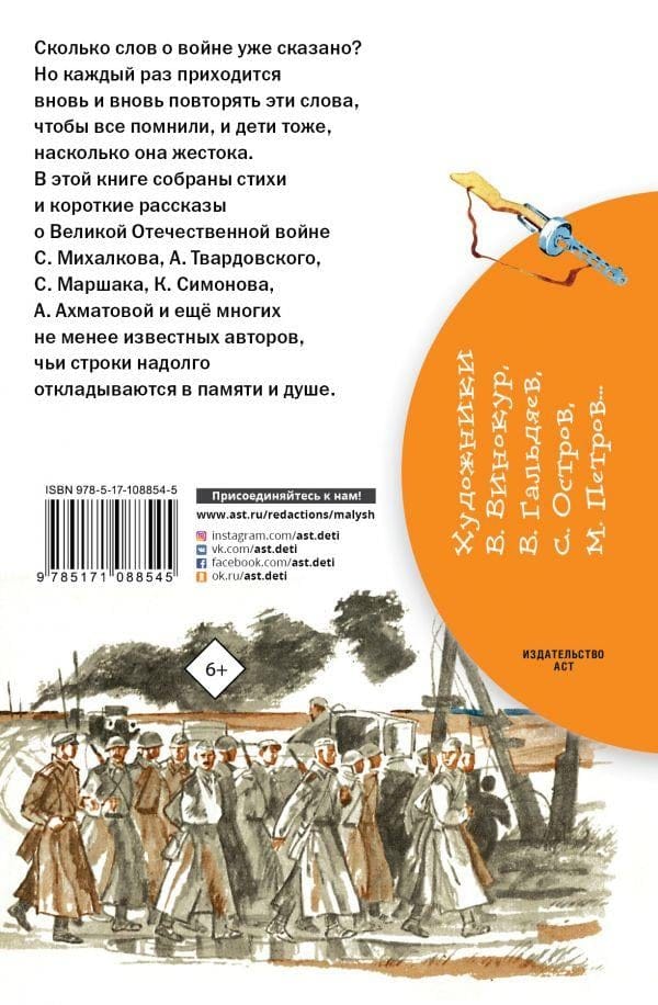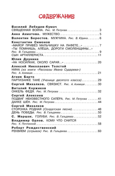 В книге «‎Стихи и рассказы о войне»‎ собраны произведения В. Лебедева-Кумача, К. Симонова, С. Михалкова, Е. Евтушенко и других известных поэтов и писателей о Великой Отечественной войне, о победе, доставшейся нашему народу дорогой ценой. Стихи, песни и короткие рассказы стали невольными свидетелями событий военных лет; благодаря им современный читатель не только узнает исторические подробности, но и эмоционально сопереживает их с героями литературных произведений. Для младшего школьного возраста.
