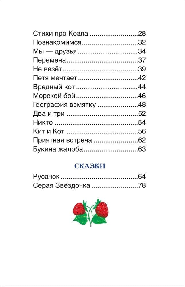 В сборник вошли замечательные стихи Бориса Заходера: «Собачкины огорчения», «Моя Вообразилия», «Морской бой», «География всмятку», «Кит и Кот» и многие другие, а также сказки «Русачок» и «Серая Звездочка».