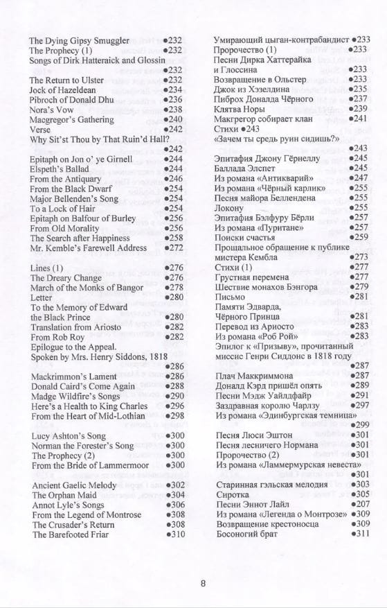 Вальтер Скотт известен нашему читателю как плодовитый романист, однако в начале творческого пути он прославился как поэт. Перу Скотта принадлежат 9 поэм, переводы и подражания немецким балладам, многочисленные стихотворения и поэтические эпиграфы к главам исторических романов. В книге представлены, часто впервые, переводы малых форм этой части литературного наследия мастера.