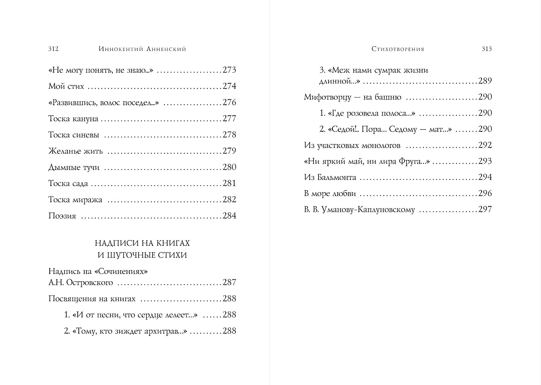 Поэзия Анненского отличается особым взглядом на мир: явления и предметы становятся больше самих себя, приобретая особый ирреальный ореол. Мистический эффект его стихов будет интересен и современному поколению читателей, чувствительных к потустороннему.