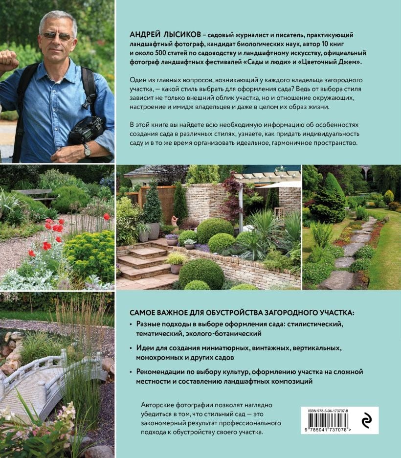 Каждый владелец загородного участка старается в меру возможностей превратить свой сад в удобный, уютный и красивый уголок. Но получается у всех, конечно, по-разному. Один из главных вопросов, возникающих в начале обустройства — какой стиль выбрать для оформления сада? Ведь от выбора стиля зависит не только внешний облик участка, но и отношение окружающих, настроение и имидж владельцев и даже в целом их образ жизни. Автор книги, известный ландшафтный дизайнер и фотограф Андрей Лысиков подробно рассказывает об особенностях создания сада в различных стилях, подсказывает, как придать индивидуальность саду и в то же время создать идеальное гармоничное пространство.