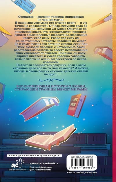 В наши дни уже мало кто в такое верит — и уж точно не следователь О Чэдо, ведущий дело об исчезновении девушки Со Хаюн. Опытный полицейский знает, что «стирателями» прикидываются обыкновенные шарлатаны, желающие набить себе цену. Разве под силу им по-настоящему «стереть» человека из мира? Да и кому нужны эти детские сказки, если Кан Чхиу, молодой человек, с которым Со Хаюн рассталась за полгода до своего исчезновения, явно увиливает от ответов. Конечно, он популярный писатель и умеет красиво говорить, только что-то не очень он расстроен ее исчезновением. Найдет ли следователь девушку, если в этом странном деле все не то, чем кажется? И может, иногда, в очень редких случаях, детские сказки не врут...