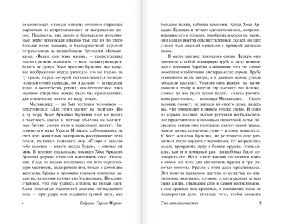 Одна из величайших книг ХХ века. Странная, поэтичная, причудливая история города Макондо, затерянного где-то в джунглях, – от сотворения до упадка.История рода Буэндиа – семьи, в которой чудеса столь повседневны, что на них даже не обращают внимания. Клан Буэндиа порождает святых и грешников, революционеров, героев и предателей, лихих авантюристов – и женщин, слишком прекрасных для обычной жизни. В нем кипят необычайные страсти – и происходят невероятные события.Однако эти невероятные события снова и снова становятся своеобразным «волшебным зеркалом», сквозь которое читателю является подлинная история Латинской Америки…