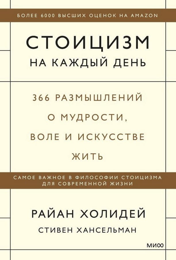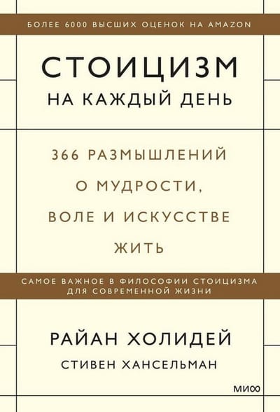Вся мудрость стоицизма в удобной форме на каждый день. Что такое стоицизм? Для обычного человека это понятие не ассоциируется с образом жизни, ориентированным на действие. А в большинстве случаев понимается как синоним «безэмоциональности». На самом деле, философия стоиков учит тому, что добродетель — это счастье, а причина большинства проблем — не в окружающих нас вещах, а в том, как мы их воспринимаем. Родившийся в бурном античном мире, стоицизм нацелен на непредсказуемую природу жизни и не теряет своей актуальности. Эта книга возвращает ему законное место — инструмента для достижения самообладания, упорства и мудрости. Райан Холидей и Стивен Хансельман изучили работы великих философов-стоиков и выбрали по одной мысли на каждый день года. Авторы проанализировали каждую из них, дополнили историями и упражнениями — вы сможете лучше понять, о чем идет речь, и найти ответы на волнующие вас вопросы.