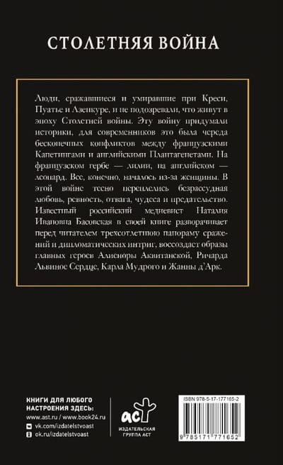 В этой войне тесно переплелись безрассудная любовь, ревность, отвага, чудеса и предательство. Известный российский медиевист Наталия Ивановна Басовская в своей книге разворачивает перед читателем трехсотлетнюю панораму сражений и дипломатических интриг, воссоздает образы главных героев Алиеноры Аквитанской, Ричарда Львиное Сердце, Карла Мудрого и Жанны д’Арк.