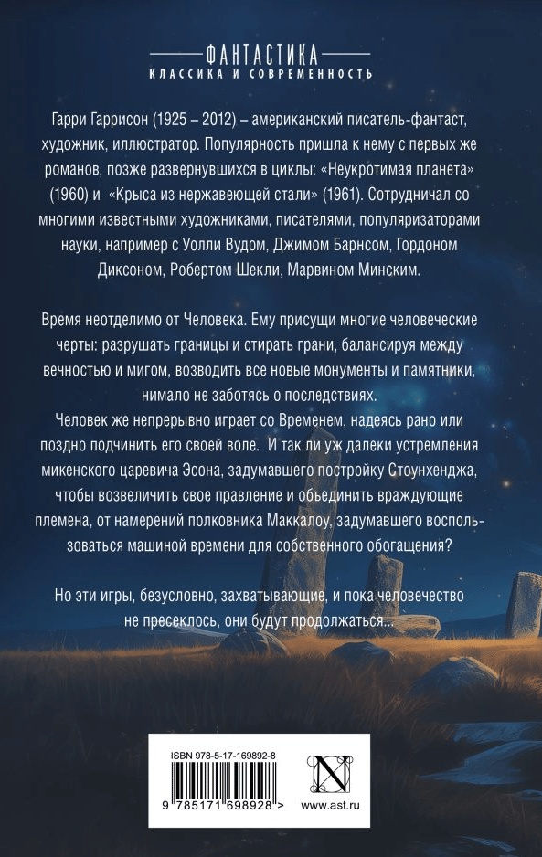 Человек же непрерывно играет со Временем, надеясь рано или поздно подчинить его своей воле. И так ли уж далеки устремления микенского царевича Эсона, задумавшего постройку Стоунхенджа, чтобы возвеличить свое правление и объединить враждующие племена, от намерений полковника Маккалоу, задумавшего воспользоваться машиной времени для собственного обогащения?