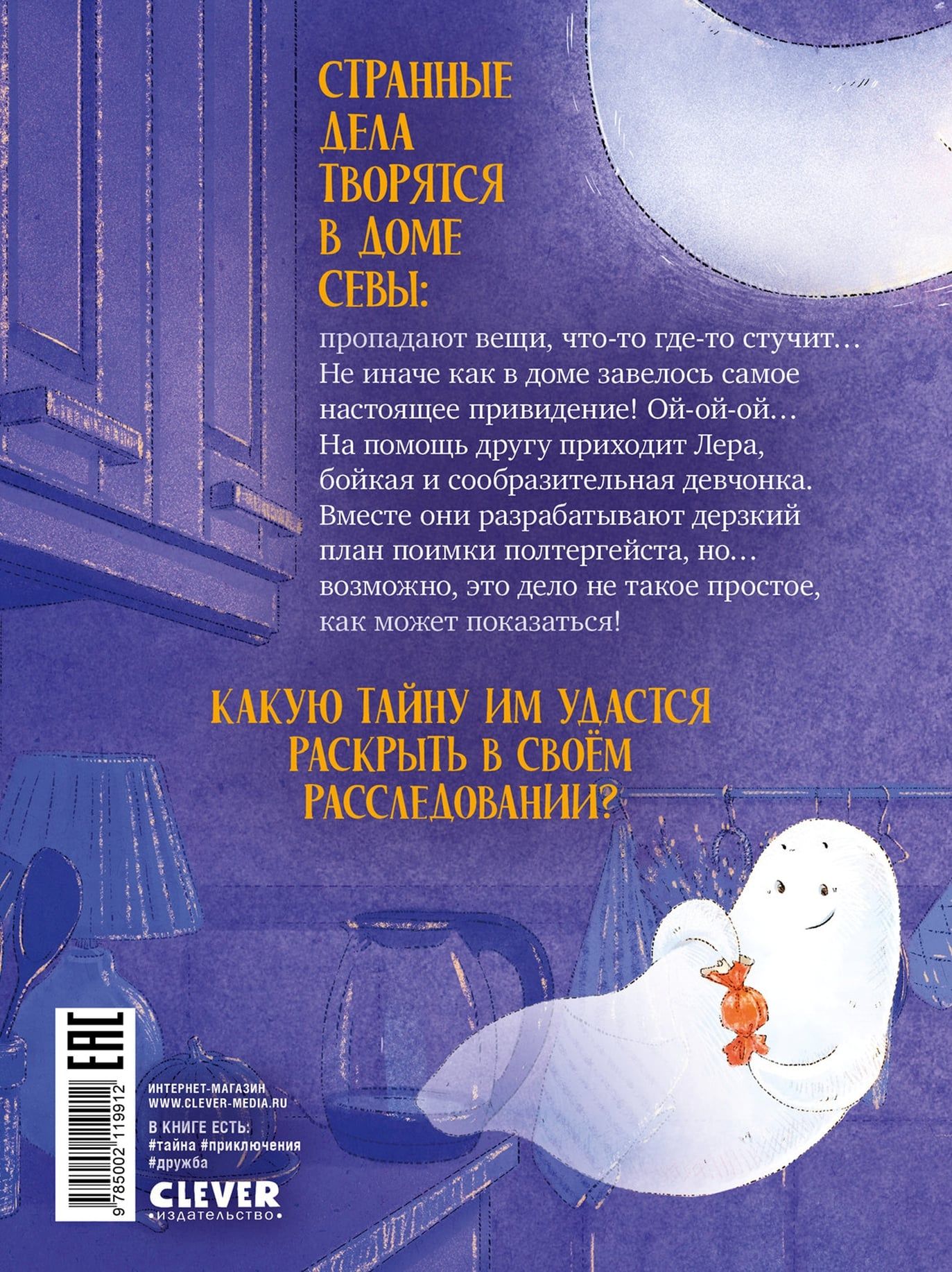 Странные дела творятся в доме Севы: пропадают вещи, что‑то где‑то стучит… Не иначе как в доме завелось самое настоящее привидение! Мальчик собирается поймать загадочного гостя, но как это сделать? На помощь другу приходит Лера, бойкая и сообразительная девчонка. Вместе они разрабатывают дерзкий план поимки полтергейста, но… возможно, это дело не такое простое, как может показаться! Какую тайну им удастся раскрыть в своем расследовании?