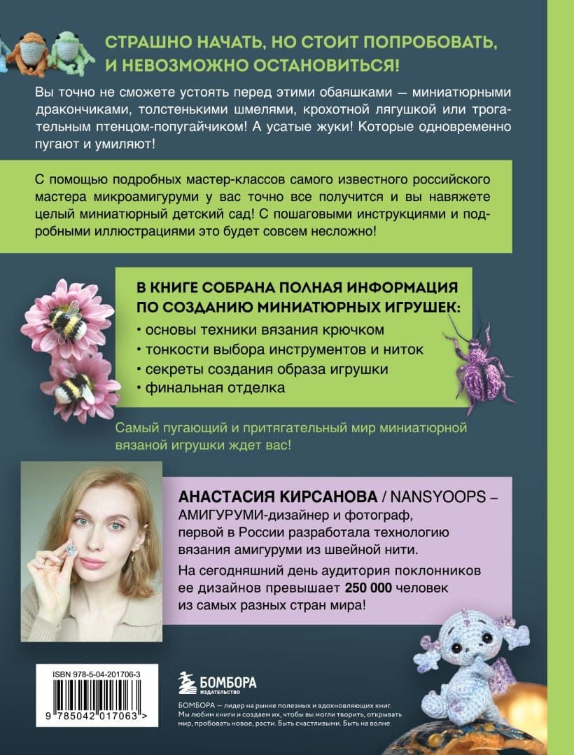 Драконы и пауки, шмели, жуки и лягушки. Очаровательные создания, которые одновременно и пугают, и притягивают нас. Как и удивительная техника микровязания крючком — сначала страшно, но стоит попробовать, и невозможно остановиться!