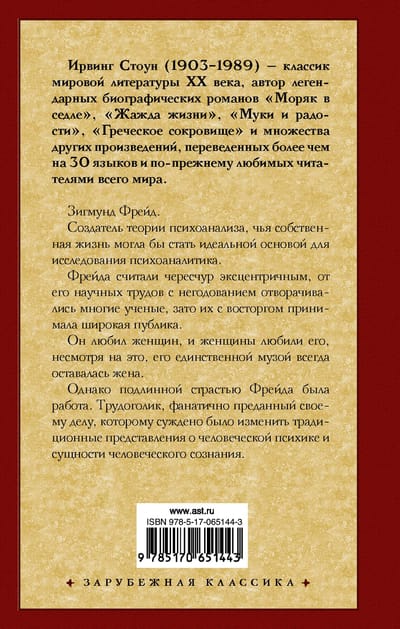Зигмунд Фрейд. Создатель теории психоанализа, чья собственная жизнь могла бы стать идеальной основой для исследования психоаналитика. Фрейда считали чересчур эксцентричным, от его научных трудов с негодованием отворачивались многие ученые, зато их с восторгом принимала широкая публика. Он любил женщин и женщины любили его, несмотря на это, его единствен-ной музой всегда оставалась жена. Однако подлинной страстью Фрейда была работа. Трудоголик, фанатично преданный своему делу, которому суждено было изменить традиционные представления о человеческой психике и сущности человеческого сознания.