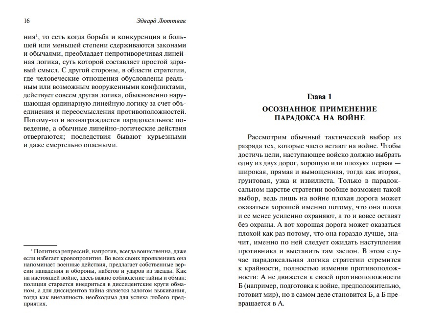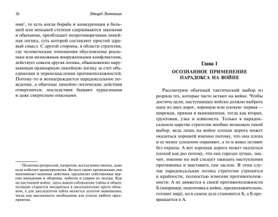 В книге «Стратегия: логика войны и мира» рассказывается о «парадоксальной» логике, лежащей в основе стратегического мышления. Обсуждаются четыре уровня стратегии: техника, тактика, оперативное искусство, стратегия театра военных действий и большая стратегия. Автор анализирует войны нового типа — «постгероические войны», порождённые страхом потерь и желанием избежать их любой ценой.