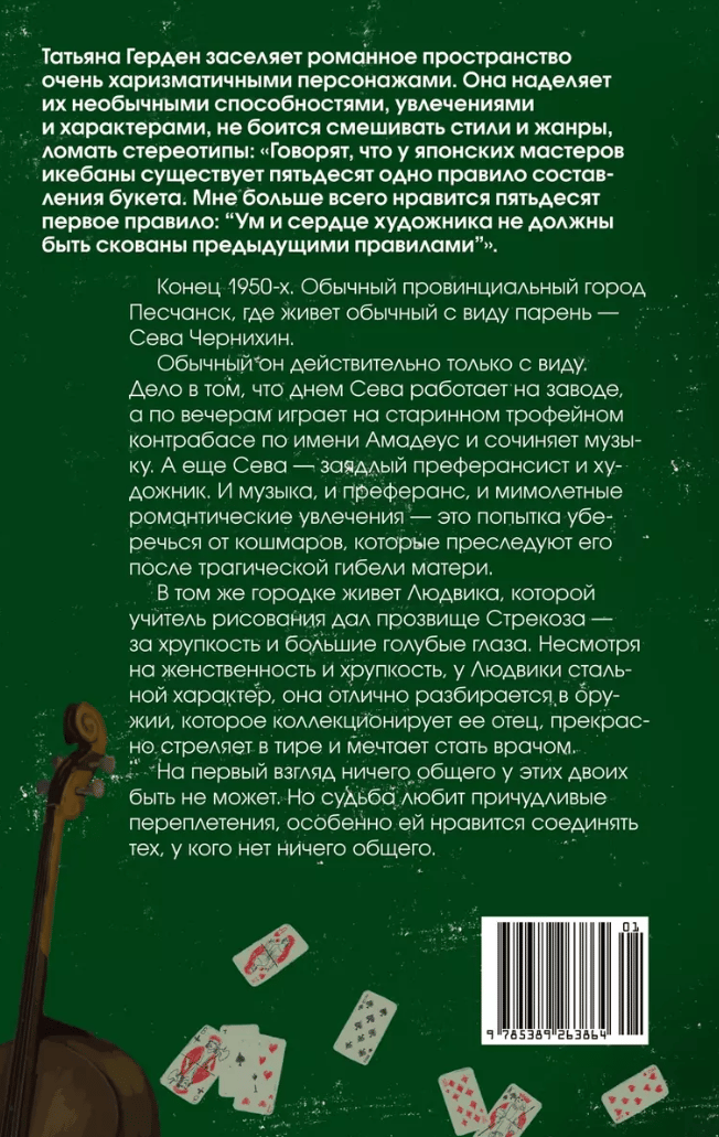 Обычный он действительно только с виду. Дело в том, что днем Сева работает на заводе, а по вечерам играет на старинном трофейном контрабасе по имени Амадеус и сочиняет музыку. А еще Сева — заядлый преферансист и художник. И музыка, и преферанс, и мимолетные романтические увлечения — это попытка уберечься от кошмаров, которые преследуют его после после трагической гибели матери.