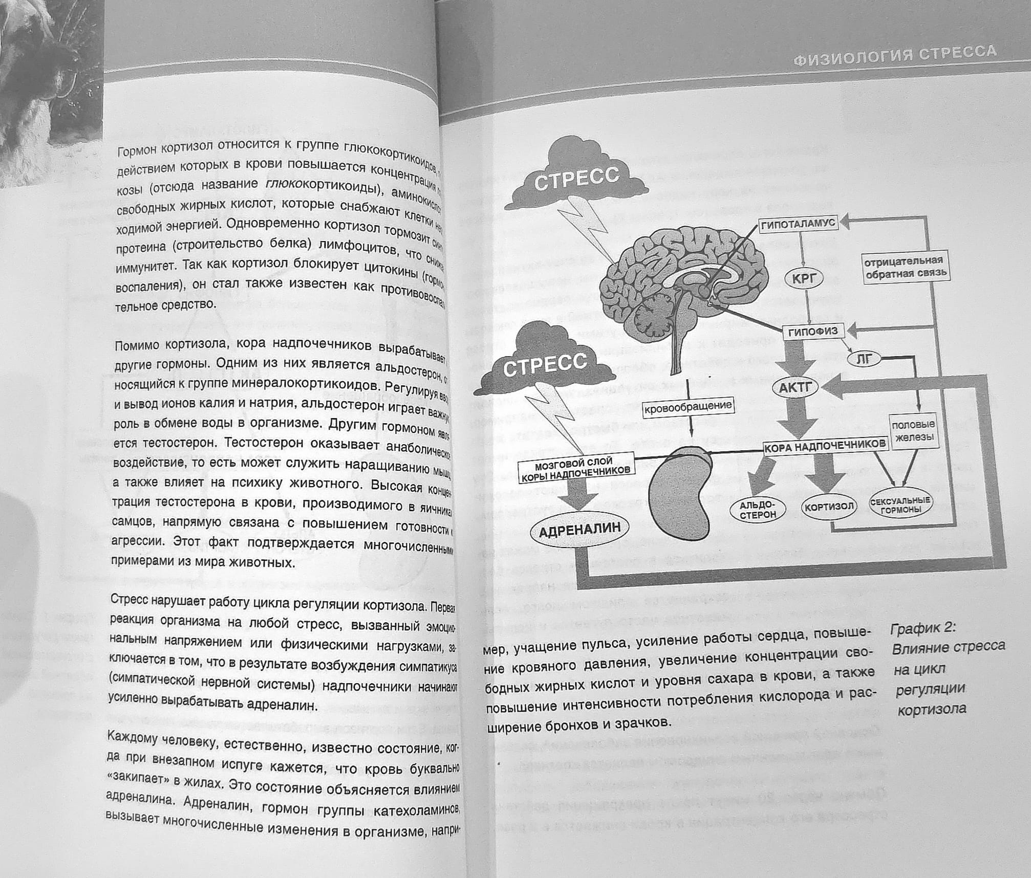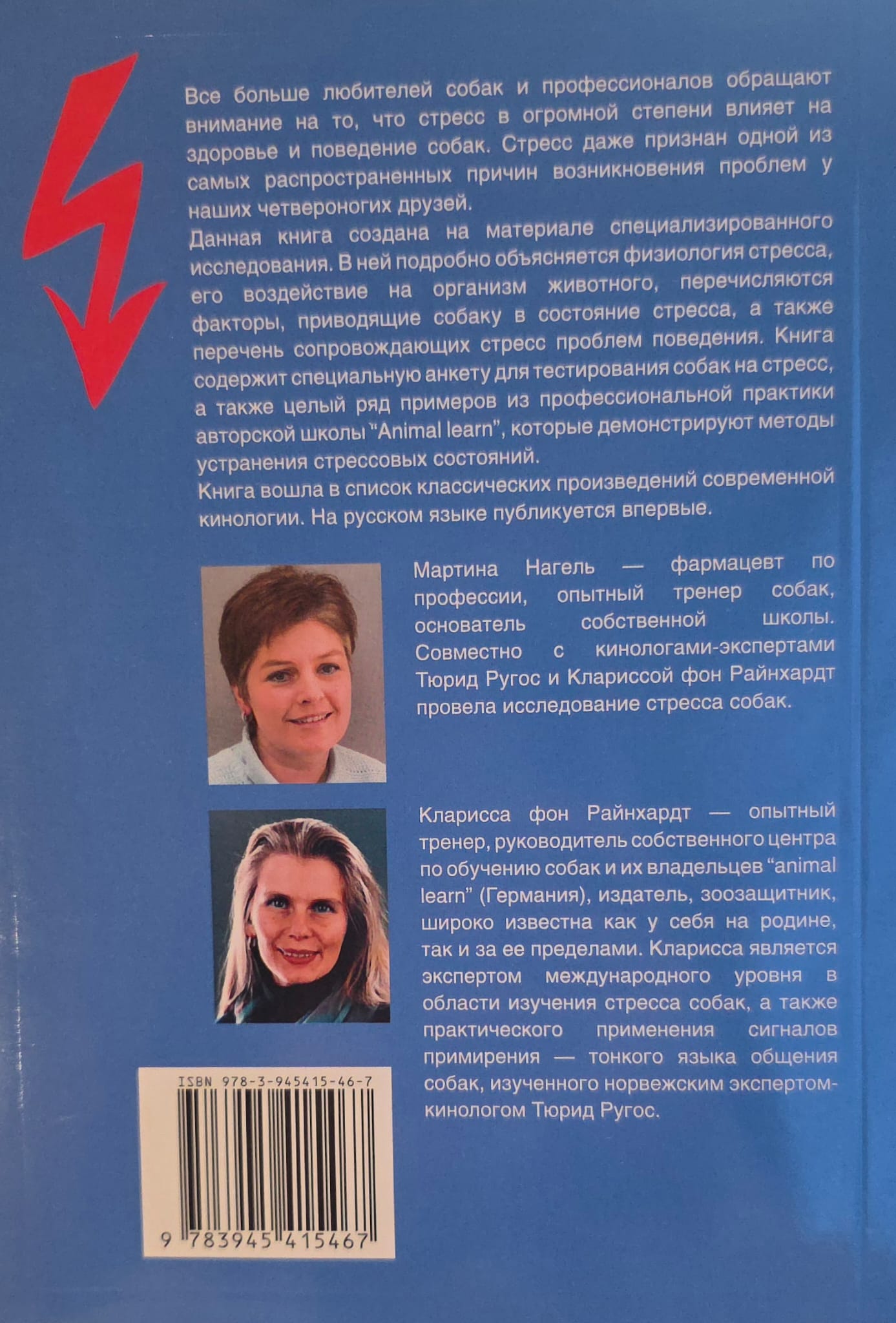 Все больше любителей собак и профессионалов обращают внимание на то, что стресс в огромной степени влияет на здоровье и поведение собак. Стресс даже признан одной из самых распространенных причин возникновения проблем у наших четвероногих друзей. Книга Стресс у собак создана на материале уникального исследования. В книге подробно объясняется физиология стресса, его воздействие на организм животного, перечисляются факторы, приводящие собаку в состояние стресса, приводится перечень признаков стресса у собаки. Книга содержит специальную анкету для тестирования собак на стресс, а также целый ряд примеров из профессиональной практики школы animal learn, которые демонстрируют методы устранения стрессовых состояний. Книга вошла в список классических произведений современной кинологии.