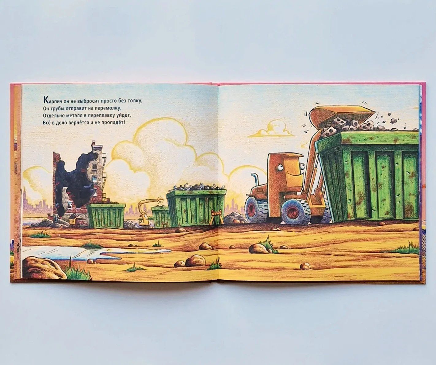 В новой истории уже полюбившейся нашим маленьким читателям строительной бригаде предстоит захватывающая работа — громить, дробить, сортировать и перевозить. В этой книге с картинками в игровой форме рассказывается о важных для ребёнка делах: о командной работы, настойчивости, преодолении препятствий, уборке в конце дня — и как получать от этого всего удовольствие!