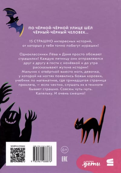 Любите страшилки? Одноклассники Лёва и Даня просто обожают! Каждую пятницу они отправляются друг к другу в гости с ночёвкой и до утра рассказывают жуткие истории! И, если честно, слушать их в темноте бывает страшно. Совсем чуть-чуть. И очень смешно! Например, один мальчик очень боялся получить двойку по английскому, потому что все, кто её получал, на месте умирали. А другая девочка очень боялась забыть дома сменку, потому что все, кто её забывал, тут же пропадали. А ещё одна девочка боялась открывать учебник математики, потому что он был проклят! В этой книге 15 страшно интересных историй, от которых у вас точно побегут мурашки!