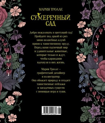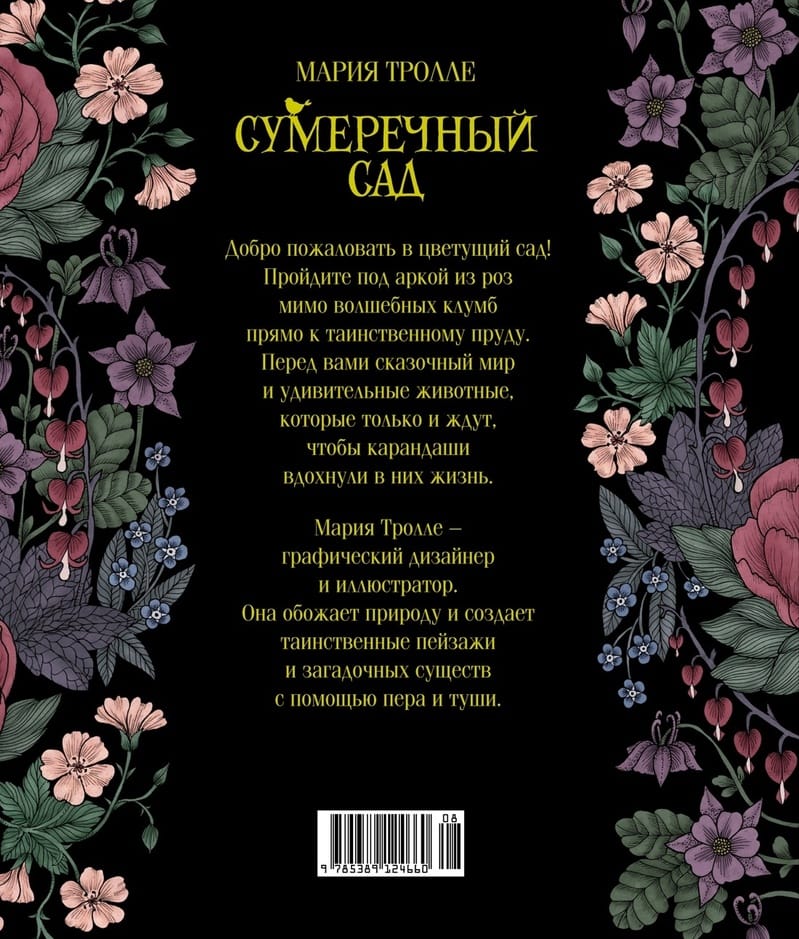 Мария Тролле, графический дизайнер и иллюстратор, обожает природу и создаёт таинственные пейзажи и загадочных существ с помощью пера и туши. Сказочные животные и удивительные растения оживают на страницах «Сумеречного сада».