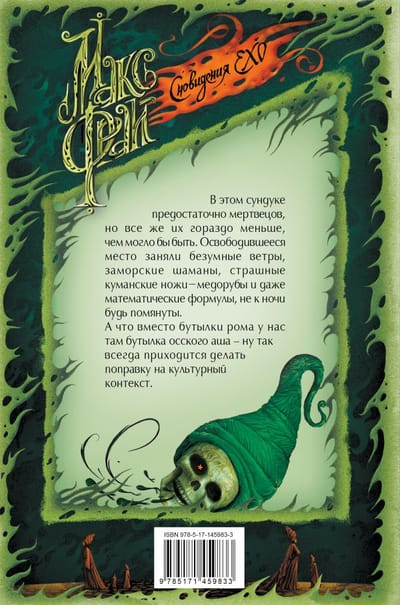 В этом сундуке предостаточно мертвецов, но все же их гораздо меньше, чем могло бы быть. Освободившееся место заняли безумные ветры, заморские шаманы, страшные куманские ножи-медорубы и даже математические формулы, не к ночи будь помянуты. А что вместо бутылки рома у нас там бутылка осского аша – ну так всегда приходится делать поправку на культурный контекст.