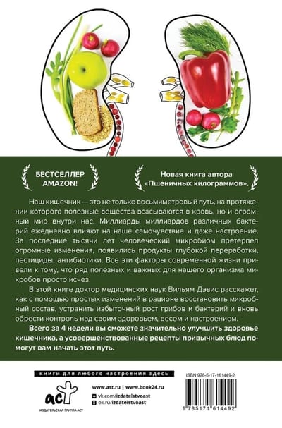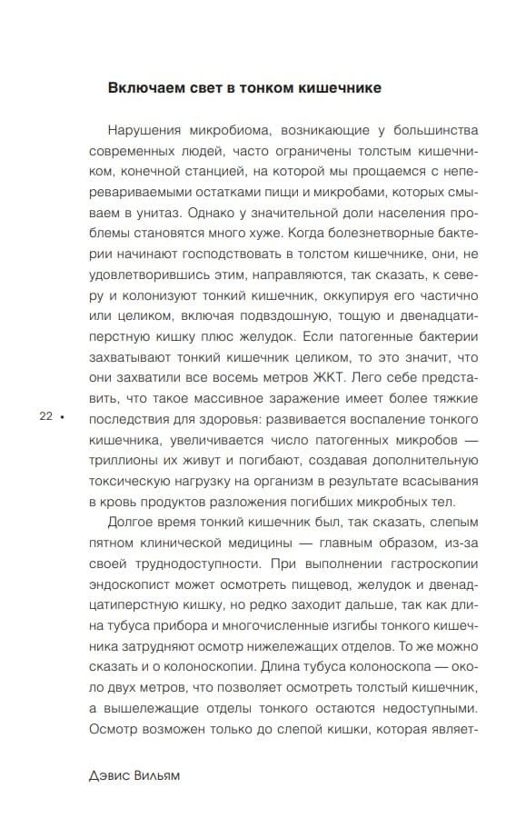 Новая книга автора «Пшеничных килограммов». Наш кишечник – это не только восьмиметровый путь, на протяжении которого полезные вещества всасываются в кровь, но и огромный мир внутри нас. Миллиарды миллиардов различных бактерий ежедневно влияют на наше самочувствие и даже настроение. За последние тысячи лет человеческий микробиом претерпел огромные изменения, появились продукты глубокой переработки, пестициды, антибиотики. Все эти факторы современной жизни привели к тому, что ряд полезных и важных для нашего организма микробов просто исчез. В этой книге доктор медицинских наук Вильям Дэвис расскажет, как с помощью простых изменений в рационе восстановить микробный состав, устранить избыточный рост грибов и бактерий и вновь обрести контроль над своим здоровьем, весом и настроением. Всего за 4 недели вы сможете значительно улучшить здоровье кишечника, а усовершенствованные рецепты привычных блюд помогут вам начать этот путь.