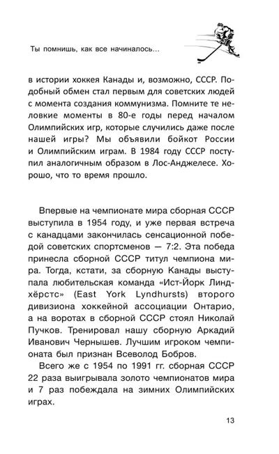 После этой серии из восьми матчей границы, разделявшие хоккеистов-профессионалов и хоккеистов-любителей, были стерты. Самые яркие воспоминания участников этого невероятного противостояния собраны в этой книге c помощью Третьяка, Якушева , Драйдена и др. Книга для тех, кто любит футбол и спорт.
