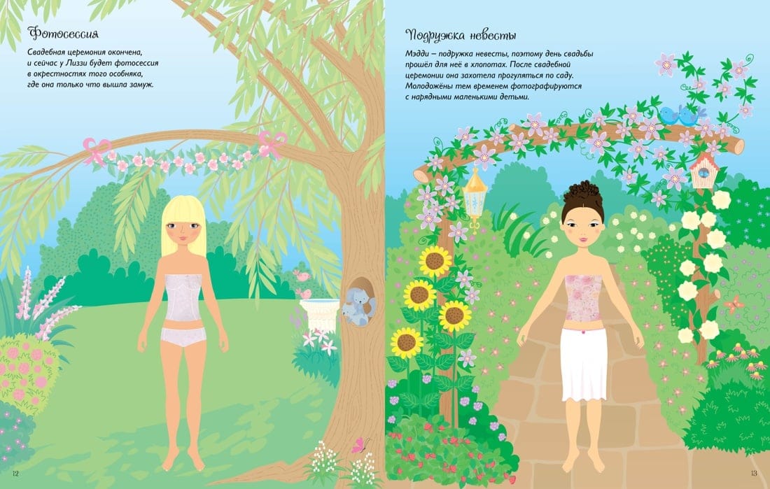 Наряди невест, их подружек, женихов и гостей с помощью ярких наклеек.