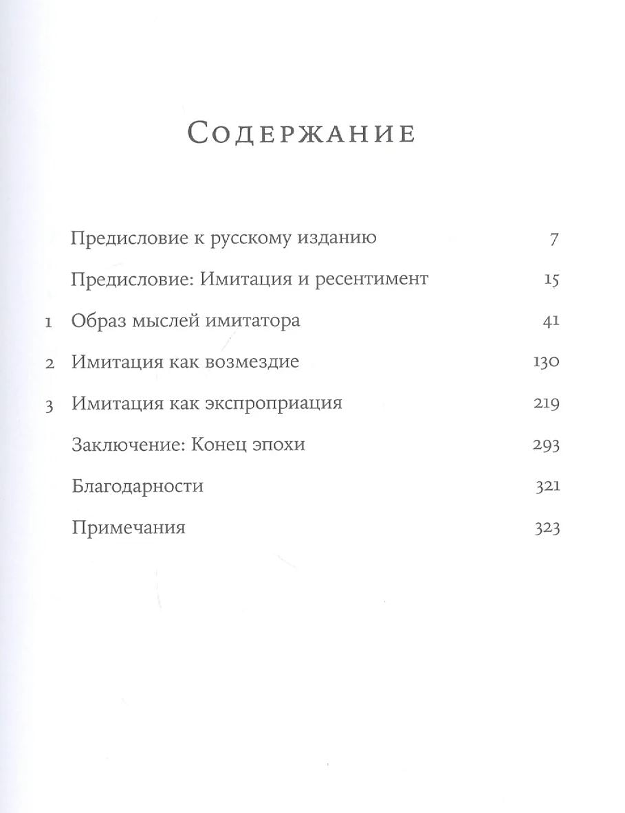 Иван Крастев и Стивен Холмс анализируют политику стран Восточной Европы, а также России, США и Китая. Россия, по мнению авторов, со временем перешла от имитации западного общественно-политического устройства к пародии на американский внешнеполитический авантюризм. В США Трамп активно разрушает представление об американской исключительности и миссионерской внешней политике, так как считает, что такая идеология сдерживает экономическое развитие страны. Китай же вообще предлагает общество без идеологии и моральных ориентиров — и многим странам такая модель оказывается близка.